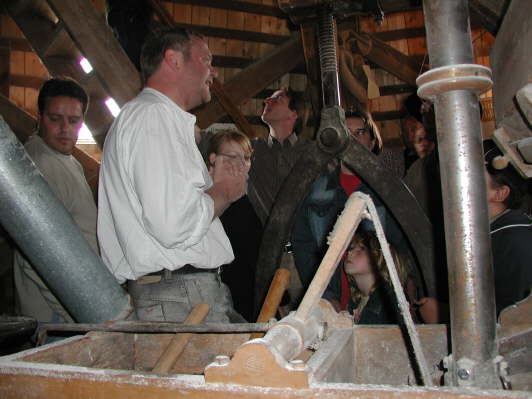 genannten Arbeitsebenen und der vertikalen Transportwege zwischen diesen, die Schilderung der Reinigungs- und Siebtechnik - kurz, aller Produktionsschritte bis zum fertigen Produkt lassen eine Mühlenbesichtigung für alle Beteiligten zum