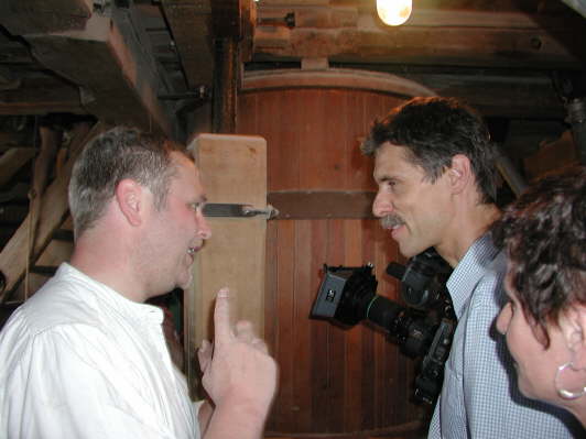 Meyer im Aufnahmeteam der AM-TVProducer, das die günstige Gelegenheit des Mühlentages nutzt, um Szenen für einen Fernsehdokumentation über Touristikrouten wie die “Niedersächsische Mühlenstrasse” für den NDR zu