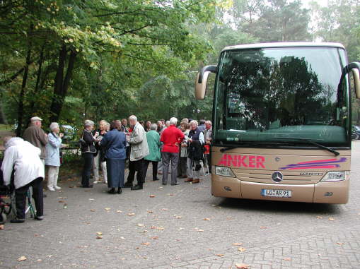 Ankunft in Worpswede nach 1 1/2 stündiger Fahrt mit einem **** Komfortbus des Reisebüro ANKER, Lüneburg. Zum Frühstück spendiert der Verein den Teilnehmern belegte Brötchen und Kaffee.