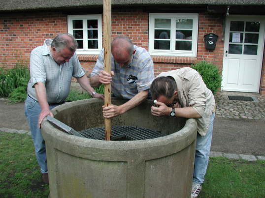 Kann man nachempfinden, welche Mühsal es bedeutete, aus einem engen Schacht von gut einem Meter Durchmesser und bis zu zehn Meter Tiefe eimerweise dasTrink- und Brauchwasser für eine Hofstelle mit 6-8 Menschen und etwa 10 Stück Vieh zu schöpfen ? - Erst nach dem 2. Weltkrieg setzte sich eine zentrale Wasserversorgung flächendeckend durch. Noch 1938 waren in vielen Regionen Norddeutschlands nur etwa 10 % der Höfe an das zentrale Wassernetz angeschlossen.