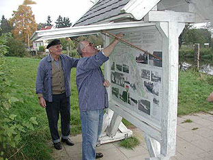 Einer der traditionsreichsten Bardowicker Vereine, der Verein der Ilmenauschiffer Bardowick - auch “Schiffergilde” genannt - hält die Erinnerung wach an die einstmals große Zeit der Bardowicker Ilmenauschifffahrt. Der Windmühlenverein Bardowick e.V. hat nun der Schiffergilde an der von ihm errichteten und 1998 eröffneten Anlage zur “Verschollenen Wassermühle zu Bardowick” an der Bardowicker Ilmenauschleuse die zum Treidelpfad gewandte Schaufläche des Informationsstandes kostenlos und unbefristet überlassen. - Bereits nach der Einweihung der Anlage war vorübergehend eine Infotafel zur Bardowicker Ilmenauschifffahrt auf der zunächst für andere Zwecke vorgesehenen Fläche des Infostandes angebracht worden. Nun hat die Schiffergilde eine neue Darstellung in Text und Bild zur Geschichte der Bardowicker Ilmenauschifffahrt erarbeitet und in wetterresistenter Form auf eine Tafel übertragen. Am 18. Oktober 2001 trafen sich der Äldermann der Schiffergilde, Herbert Werner, der Vorsitzende des Vereins der Bardowicker Ilmenauschiffer, Hans-Jürgern Werner und der Vorsitzende des Windmühlenverein Bardowick e.V., Heinz Thiemann, an der Ilmenauschleuse, um die neue Schautafel im Infostand anzubringen. Bardowicker Bürger und ihre Gäste, Touristen, Wanderer und Radwanderer können nun an einem der reizvollsten Plätze an der Ilmenau Interessantes und Spannendes zur Geschichte der Bardowicker Ilmenauschifffahrt erfahren.