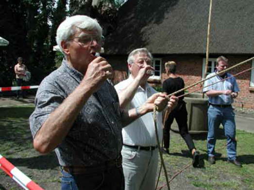 Horst ut Kanada un Fritz ut´n Schaumborger Land, Frünne ut de Jugendtied von Heinz Thiemann, de sick na föfftig Johren hier an Bewicker Mölenfest eerstmaals wedder inn´e Ogen hevt kieken könn, de stimmt övereen, dat et dat beste Sootwoter is, wat man in Bewick drinken kann. De beid hevt dat all afmakt, dat se nööst dat Mölenfest in Bewik wedder beseuken wüllt , all wegen den Sootwater, un Cilly un Ilse sünd dann ok dabee.