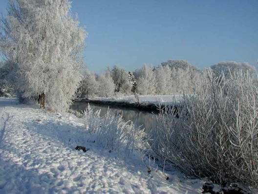 Blick vom Treidelpfad an der Ilmenau flussabwärts auf die Allee zum Gut Vrestorf - 9. Januar 2003