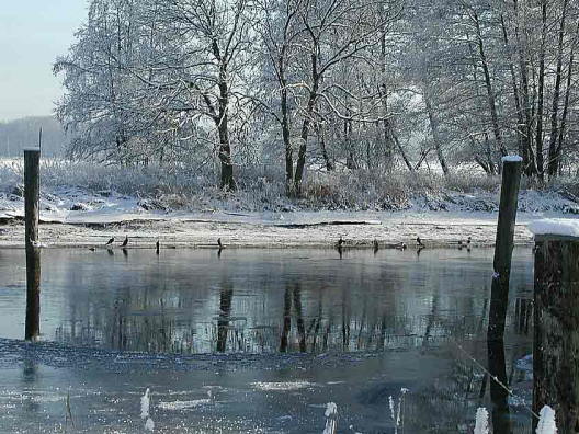 Kormorane an der Ilmenau - Ein ebenso begeisterter wie staunender Spaziergänger berichtete, dies in den vergangenen 30 Jahren noch nie beobachtet zu haben. - 10.Januar 2003